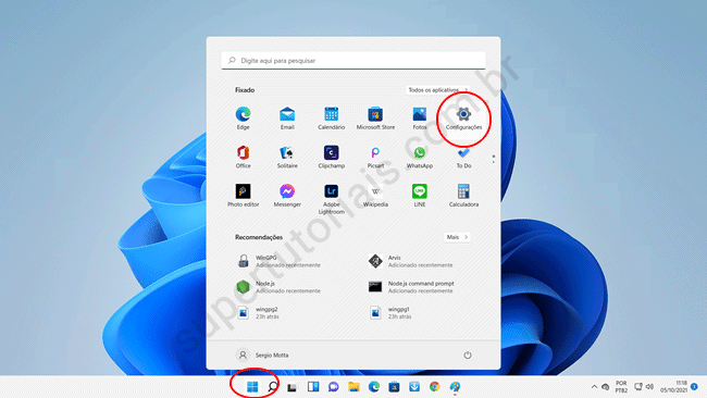 1. Modificar o alinhamento dos ícones na barra de tarefas no Windows 11 é bastante simples. Para começar, clique no Menu Iniciar e abra a opção Configurações ou simplesmente pressione Win + I.