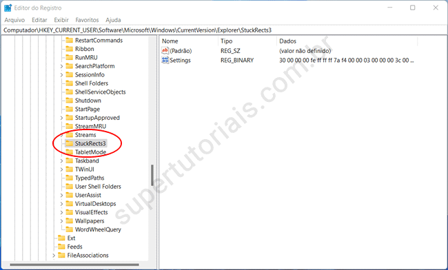 HKEY_CURRENT_USER\SOFTWARE\Microsoft\Windows\CurrentVersion\Explorer\StuckRects3