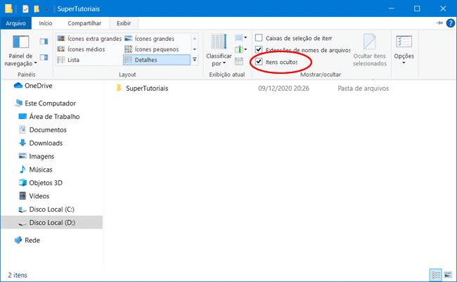 3. Uma vez feito isso o arquivo ficará oculto, recarregue a pasta no Windows Explorer pressionando a tecla F5 ou então, simplesmente feche e abra a pasta novamente e o arquivo não deve mais estar visível. Mesmo que você marque a opção de visualizar os “Itens ocultos” o arquivo não será exibido.