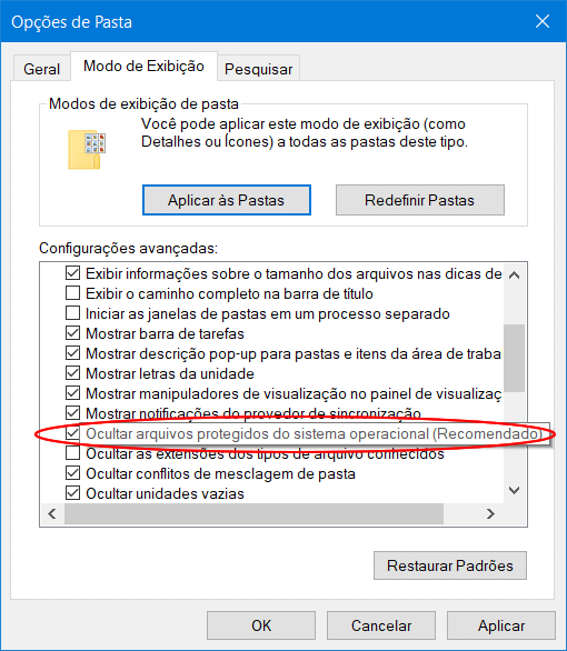 4. Para que o arquivo seja exibido, você precisa habilitar a opção de exibir arquivos do sistema nas opções de pasta do Windows Explorer e para tornar ele visível novamente utilize o comando abaixo.