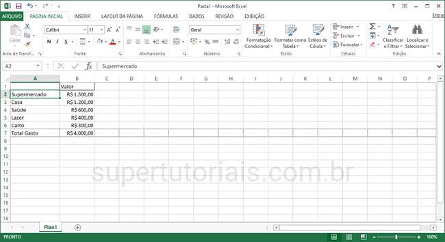 1. Comece inserindo os dados. Neste exemplo, vemos um gráfico com o orçamento de uma pessoa.