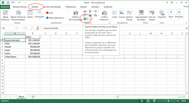 Como criar um gráfico de pizza no Microsoft Excel: