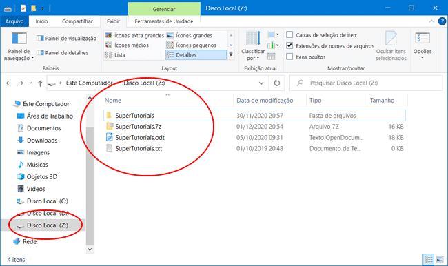 3. Pronto, agora você pode acessar a pasta a partir do Explorador de Arquivos. Ele criará um “Disco Local” com a letra da unidade selecionada e você pode copiar, editar ou criar novos arquivos dentro dessa pasta normalmente, exatamente da mesma forma que acessa qualquer pasta no computador.