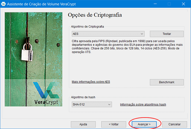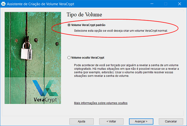 4. Marque a opção “Volume VeraCrypt padrão” e clique em “Avançar”.