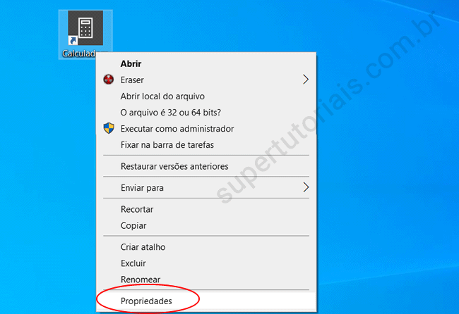 4. Clique com o botão direito no atalho na área de trabalho e selecione a opção “Propriedades“.
