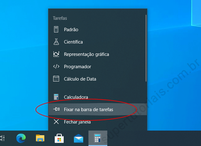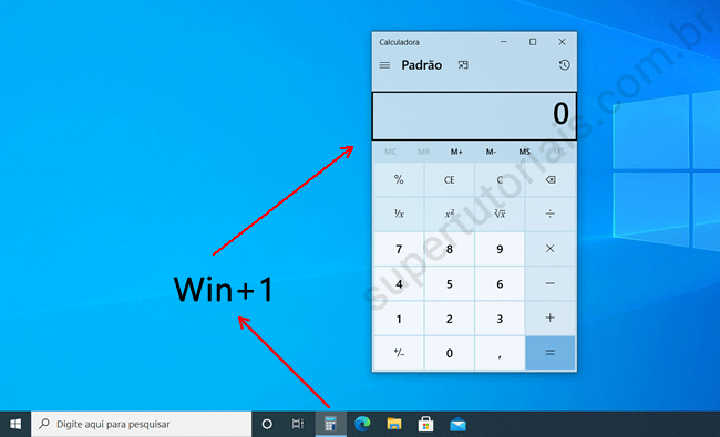 Você também pode fixar a calculadora na barra de tarefas do Windows, e utilizar a tecla de atalho padrão “Win + o número do icone do programa na barra de tarefas” para abrir os programas fixados na barra de tarefas. Por exemplo, para abrir o primeiro programa da barra de tarefas, use “Win+1“.