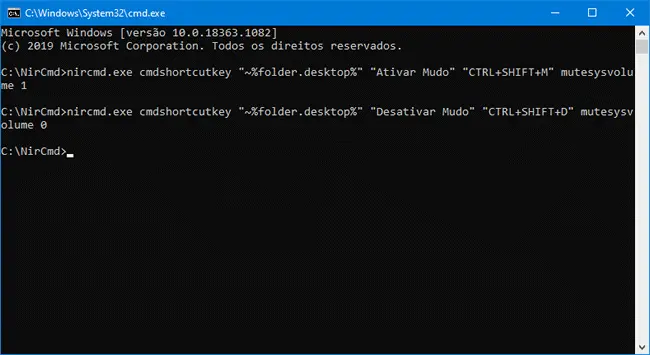 nircmd.exe cmdshortcutkey "~%folder.desktop%" "Desativar Mudo" "CTRL+SHIFT+D" mutesysvolume 0