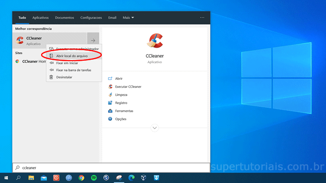 1. A primeira coisa que você precisa fazer é criar um atalho para o programa. Pesquise pelo nome do programa no menu iniciar, clique com o botão direito nele e escolha a opção “Abrir local do arquivo”.