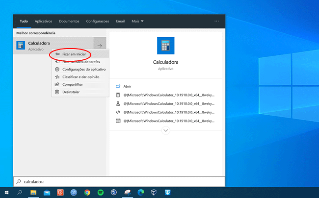 1. Você também pode criar teclas de atalho para aplicativos do Windows 10. Pesquise pelo aplicativo no Menu Iniciar, clique com o botão direito no nome do aplicativo e clique na opção “Fixar em Iniciar”.