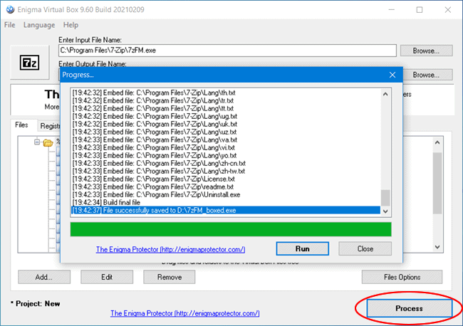 6. Isso é tudo o que você precisa fazer. Clique no botão “Process” para criar uma versão portátil do programa. Ao terminar, copie-o para o pendrive para executá-lo em outros computadores Windows.