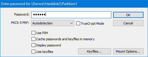 2. Em seguida, digite a senha usada para criptografar o pendrive e clique em “OK”.