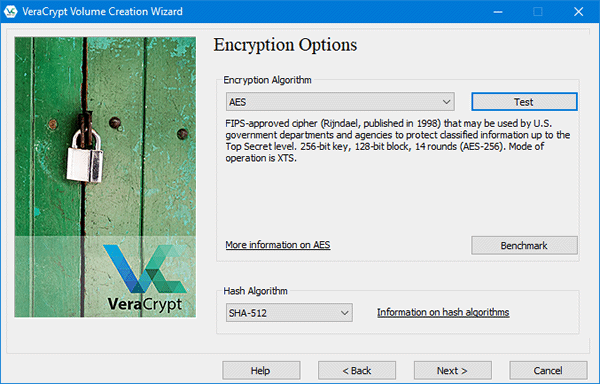 6. Na tela seguinte, você pode definir as opções de criptografia. A configuração padrão é ótima, você não precisa alterar nenhuma opção aqui. Basta clicar no botão “Next” para continuar o procedimento.