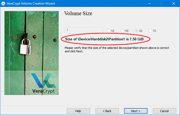 7. Confirme o tamanho da unidade do pendrive e clique em “Next”.