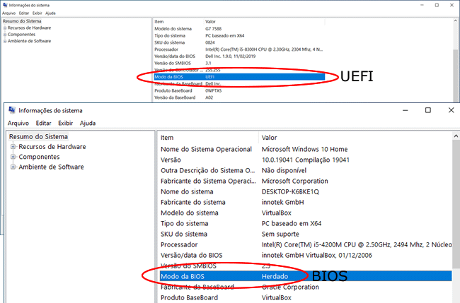 Opção 1 – Como verificar se o computador suporta BIOS ou UEFI: