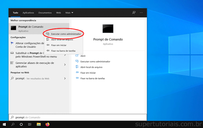 1. Você também pode usar o Prompt de Comando para verificar o tipo de BIOS usada. Pesquise por Prompt de comando no Iniciar, clique com o botão direito e selecione “Executar como administrador”.