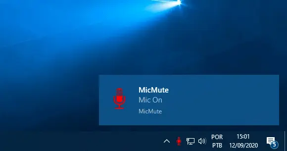 4. Clique em “OK” e pronto, agora sempre que quiser ligar/desligar o microfone rapidamente, basta você usar a tecla de atalho. Sempre que você liga ou desliga o microfone em seu computador, uma notificação é exibida na área de trabalho. Além disso, ele também irá emitir uma notificação sonora.