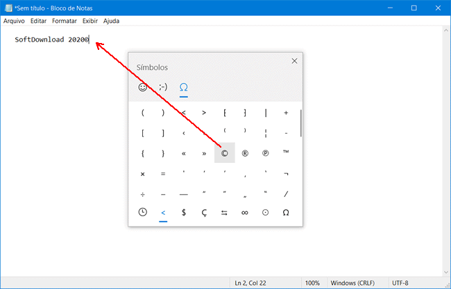 3. Clique duas vezes em um símbolo para copiá-lo. Depois, basta você colá-lo no texto.