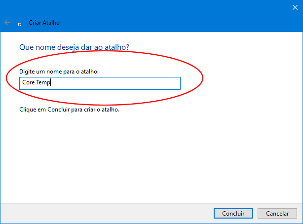 4. Em seguida, digite um nome para o atalho e clique em “Concluir”.
