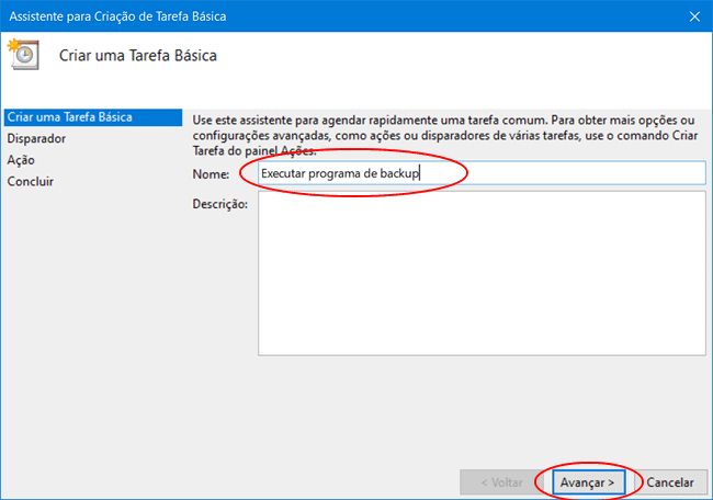 3. Digite um nome para a tarefa e clique em “Avançar”.