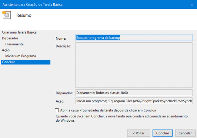 7. Uma vez feito isso, ele irá exibir um resumo da tarefa. Clique em “Concluir” para fechar a janela.