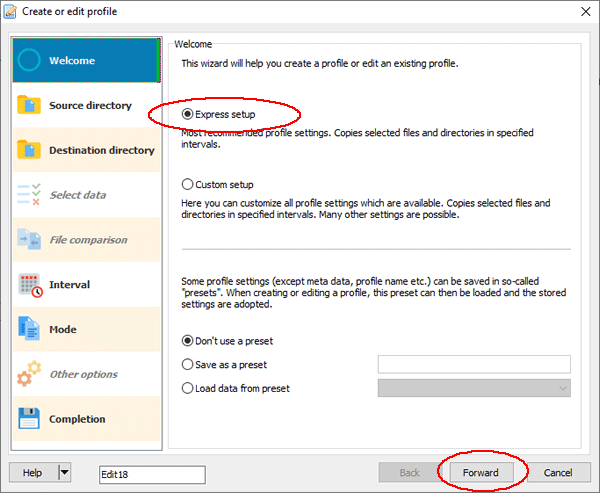 3. Certifique-se que a opção “Express setup” está selecionado e clique em “Forward”.