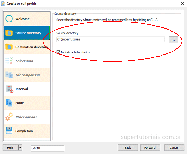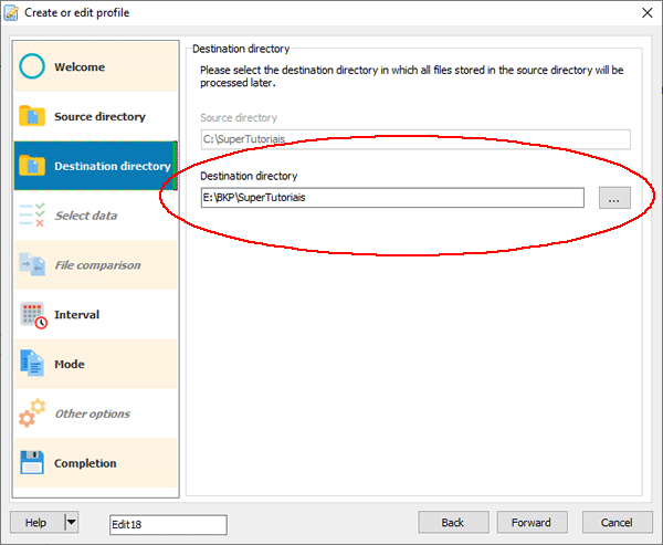 4. Em seguida, selecione a pasta que deseja fazer backup.