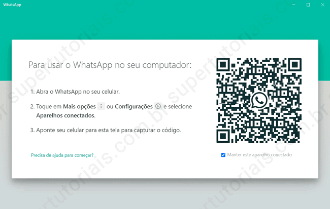 3. Após a instalação, inicie o do WhatsApp para Desktop partir do atalho adicionado no Menu Iniciar e escaneie o QR code com o WhatsApp no celular, da mesma maneira que você faz no WhatsApp Web.