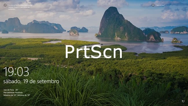 2. Ao fazer isso, a tela de bloqueio será exibida. Pressione o botão PrtSc (Print Screen) no teclado para realizar a captura da tela (printscreen) da tela de bloqueio do Windows 10 em seu computador.