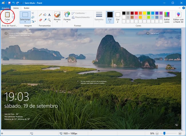 4. Pesquise Paint no Menu Iniciar, abra o Paint e clique em “Colar” para colar a imagem capturada.