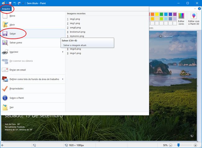 5. Clique no menu “Arquivo > Salvar” para salvar a captura de tela de bloqueio como imagem.