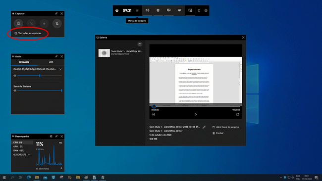 A ferramenta de gravação de tela do Windows 10 faz parte da barra de jogo (Xbox Game Bar). Ela se destina a gravação de jogos, mas não há nada que o impeça de usá-la para gravar programas.