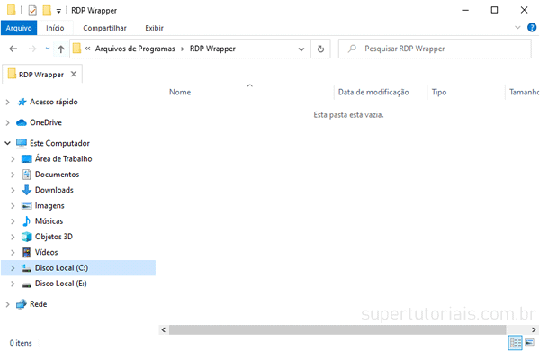 2. Baixe o arquivo “RDPWrap-v1.6.2.zip” e extraia para a pasta RDP Wrapper. Não copie para outro local, os arquivos devem ser extraídos para a pasta “C:\Program Files\RDP Wrapper” para funcionar.