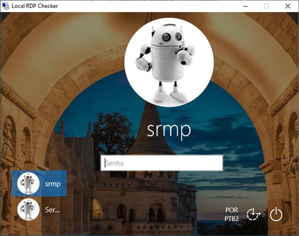 6. Para testar se a conexão remota está funcionando, execute o arquivo RDPCHeck.exe e na janela aberta, clique em “Conectar”. Ao fazer isso, será exibida a tela de login do Windows 10 em seu PC.