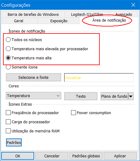 5. Na janela de configurações, abra a guia “Área de notificação” e aqui você poderá optar por exibir apenas o núcleo com a temperatura mais elevada. Isso pode ajudá-lo a reduzir o número de ícones.