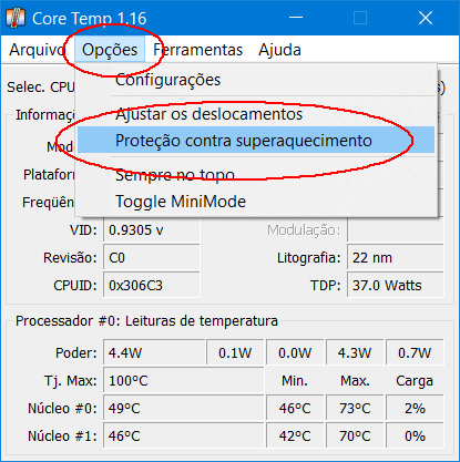 7. Ele também oferece um recurso de proteção contra superaquecimento. Para habilitar essa opção, você precisa clicar no menu “Opções” e, em seguida na opção “Proteção contra superaquecimento”.