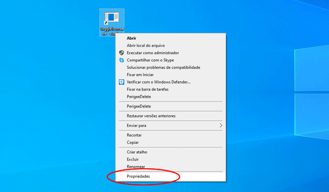 4. Se você deseja ocultar os ícones da área de trabalho através de uma tecla de atalho, clique com o botão direito no atalho do “ToogleIcons” na área de trabalho e selecione a opção “Propriedades”.
