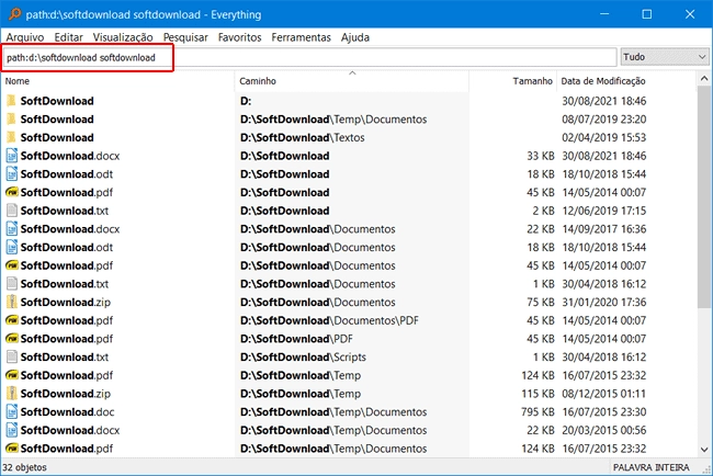 Ex: path:d:\softdownload content:softdownload