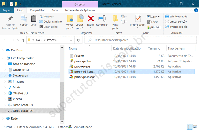 1. Baixe o arquivo Process Explorer.zip, extraia seu conteúdo para uma pasta e execute-o programa em seu computador. Execute o arquivo “procexp64.exe”, se estiver usando o Windows de 64 bits.