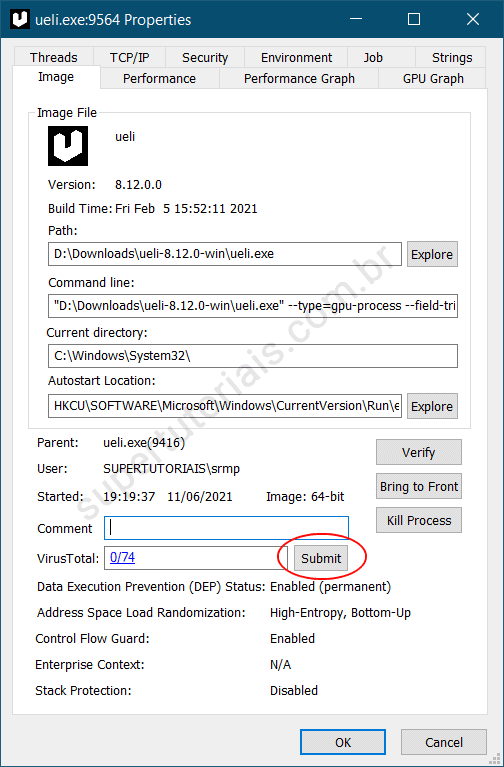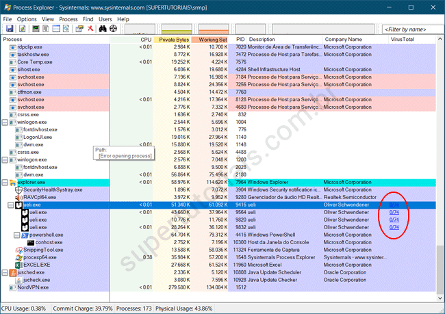 Você também pode verificar rapidamente se um processo (programa) em execução no computador é algum tipo de vírus ou outro malware usando a ferramenta gratuita Process Explorer. Veja como: