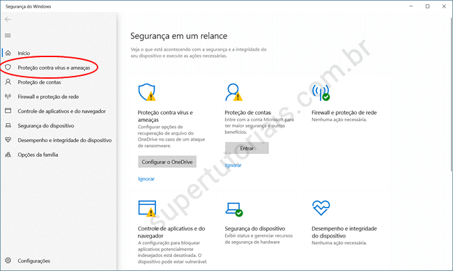 3. Na janela aberta, clique em “Proteção contra vírus e ameaças” na barra lateral.