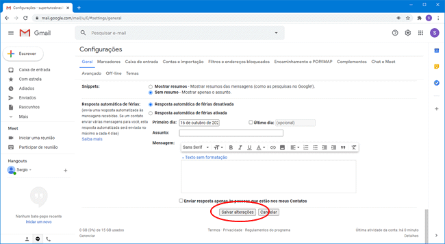 4. (Importante) Role a página de configuração até o final e clique no botão “Salvar“.