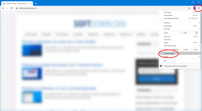 1. Para começar vamos verificar se a opção de usar o Chrome em segundo plano está ativa. Clique no botão de “três pontos” no canto superior direito do Chrome e selecione a opção “Configurações”.