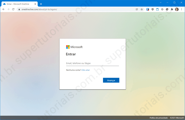1. Acesse a página do OneDrive aqui e faça login em sua conta.