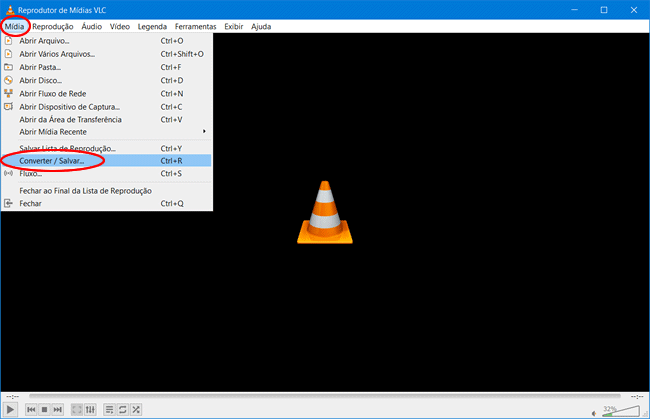 2. Uma vez instalado o VLC, abra o programa e clique no menu “Mídia > Converter/Salvar”.