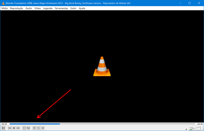 7. Você pode acompanhar o progresso de remoção do áudio pela barra do VLC na parte inferior da janela. Uma vez concluído, o novo arquivo de vídeo (sem áudio) estará disponível no local escolhido.