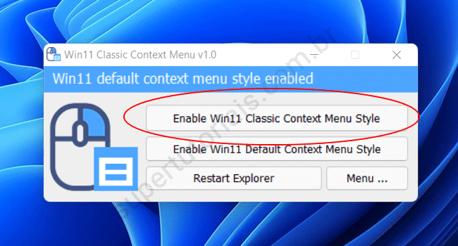 3. Clique em Enable Win11 Classic Context Menu Style e depois em “Sim” para confirmar.