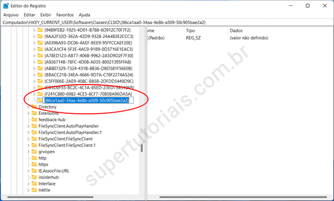 4. Nomeie a chave criada com {86ca1aa0-34aa-4e8b-a509-50c905bae2a2}