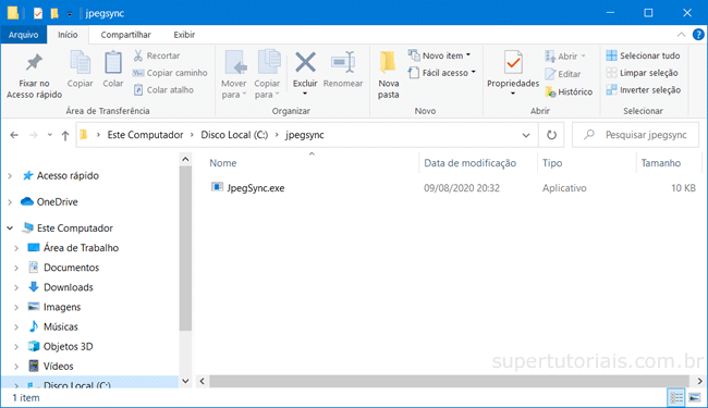 2. Copie o arquivo jpegsync.exe para uma pasta de fácil acesso, como por exemplo “C:\jpegync”.