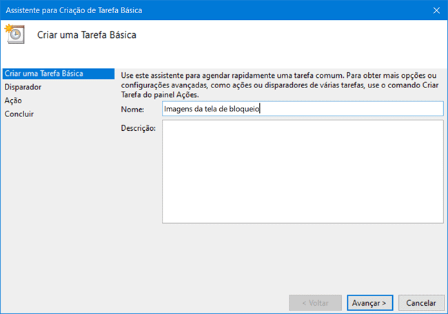 5. Digite um nome para a tarefa, como “Imagens da tela de bloqueio” e clique em “Avançar”.