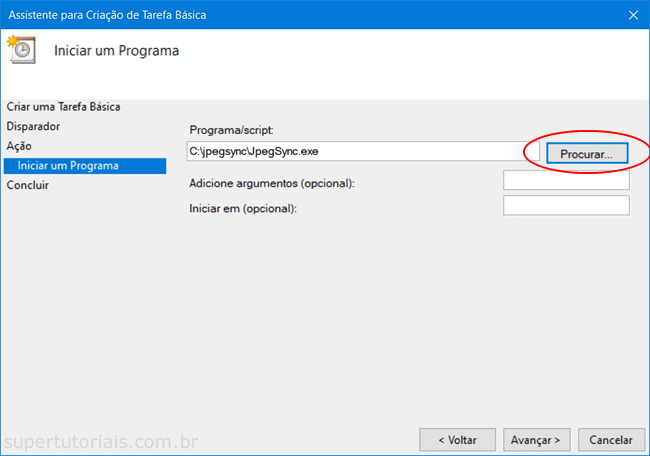 8. Em seguida, clique em “Procurar” e selecione o arquivo “jpegsync.exe” que você baixou.